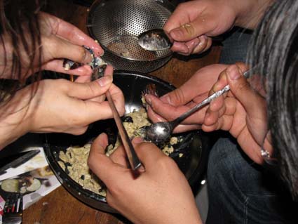 2 サクサンをゆで、殻をむいて身を出し、よくほぐす。