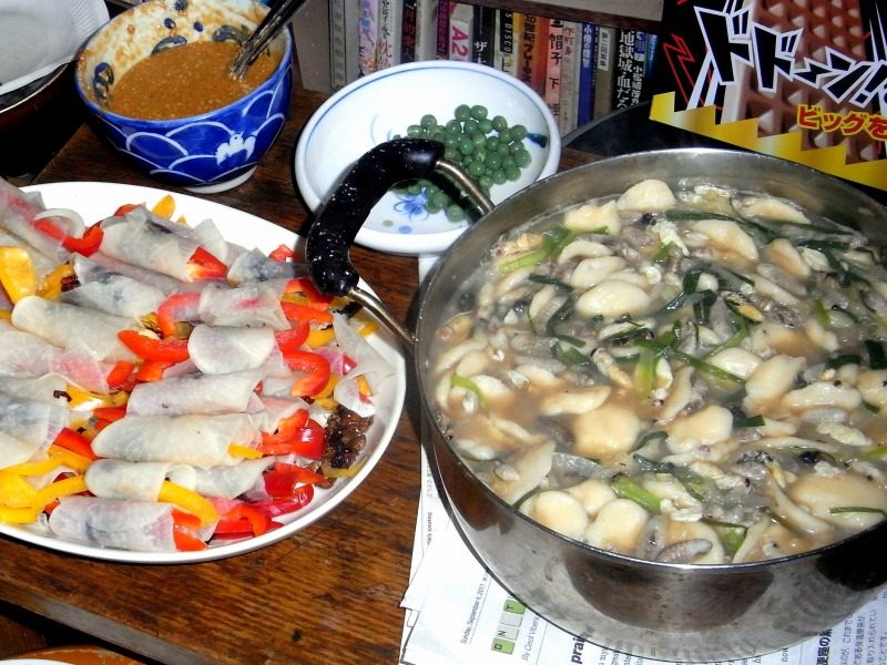 6 じゃがいもに火が通ったら、スゼビの生地をしゃもじの上に適量のせ、箸か果物包丁の背で鍋に切り落とす。水をつけながらやると、くっつかない。