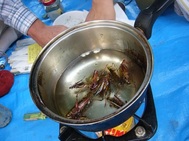 今年もバッタがおいしい季節がやってきました。飛翔能力にすぐれたトノサマバッタの採集は、野性味あふれる昆虫食の原点です。秋の一日をおおいに楽しみましょう。